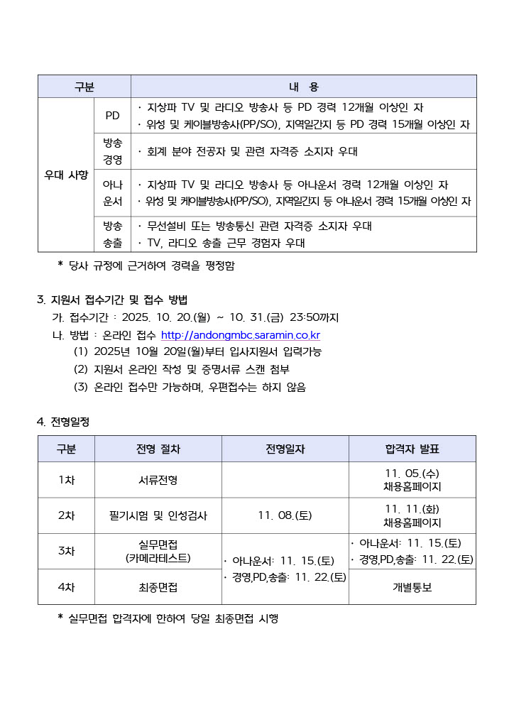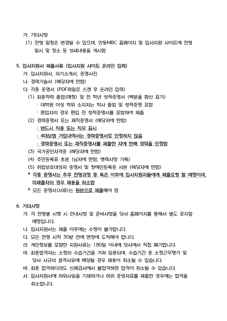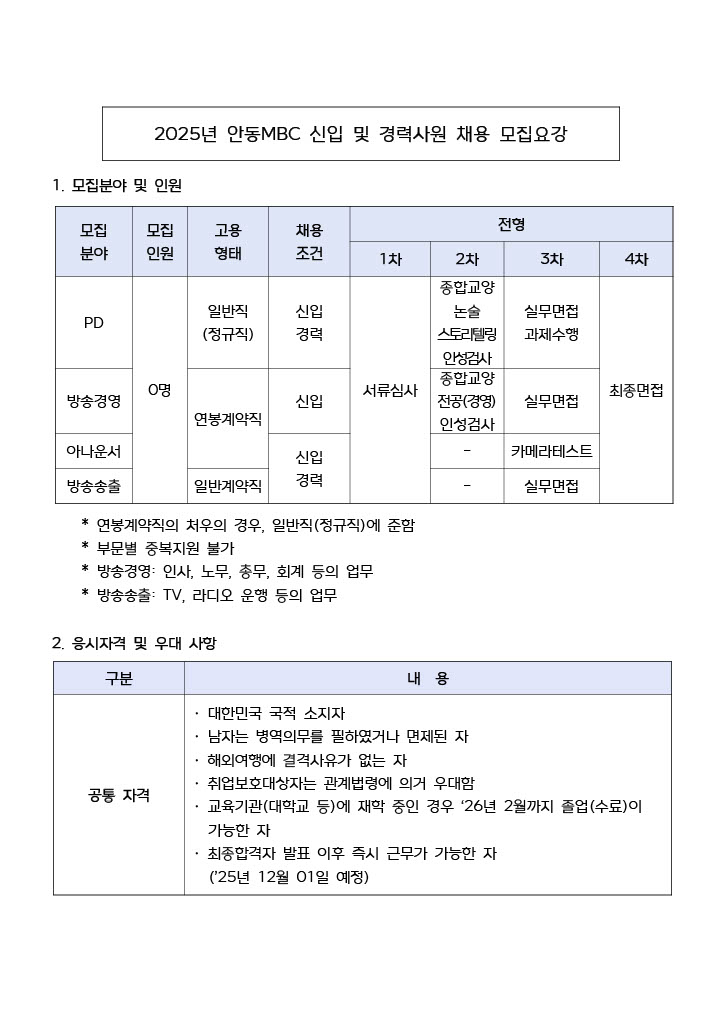 안동MBC 연봉계약직 아나운서 채용